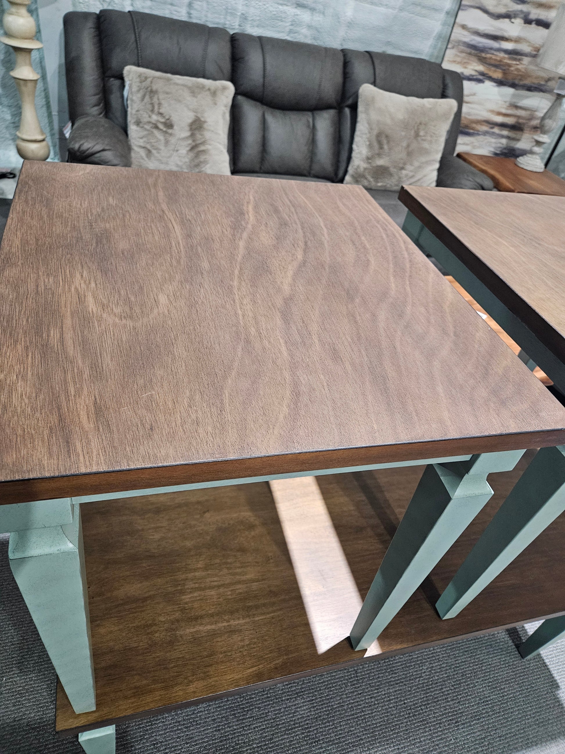 Antique Blue and Oak 3 Pc Occasional Table Set