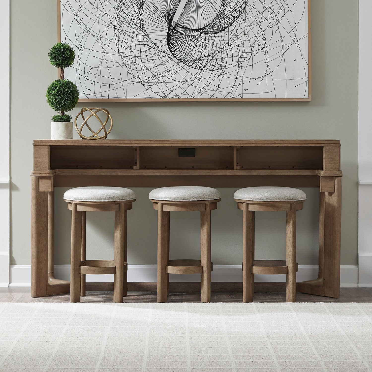 - Includes the Console Bar Table & 3 Uph Console Stools