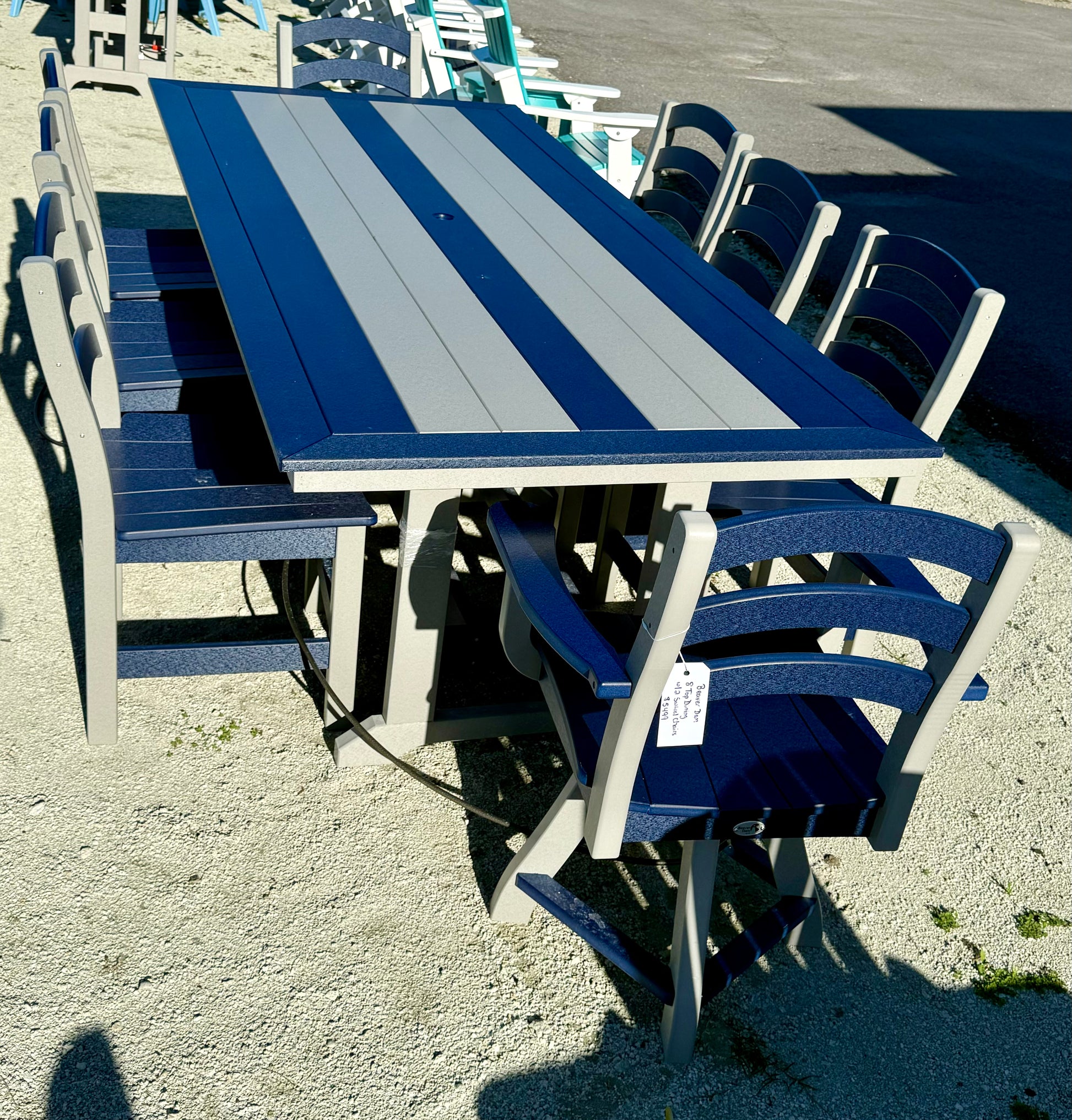 Expertly crafted with high quality HDPE material and marine grade stainless steel hardware, the Beaver Dam 8 Top Dining Set offers a 20 year warranty for a durable and long-lasting outdoor dining experience. Includes 6 stationary chairs and 2 swivel end chairs. Elevate your backyard gatherings with this luxurious set.