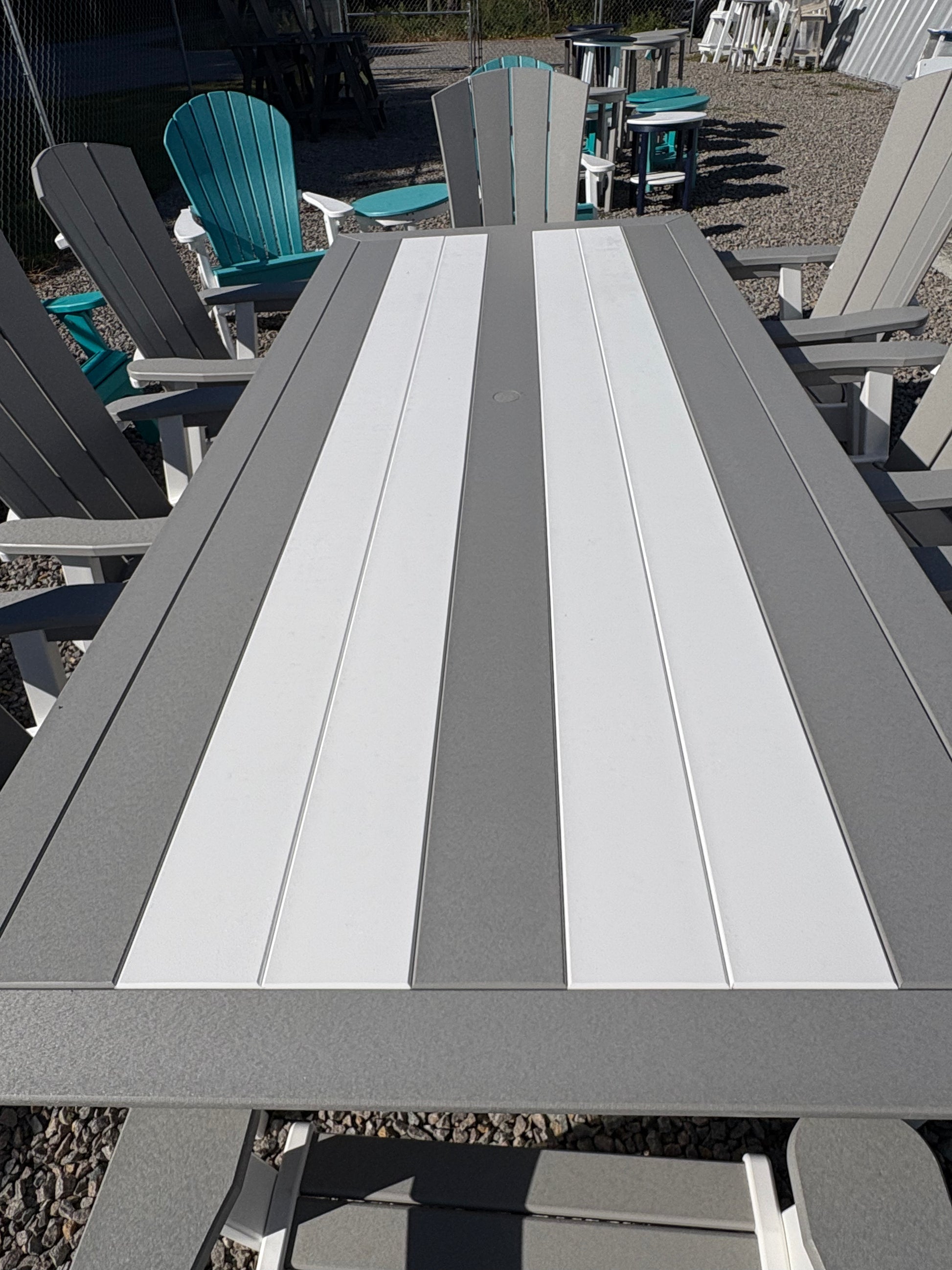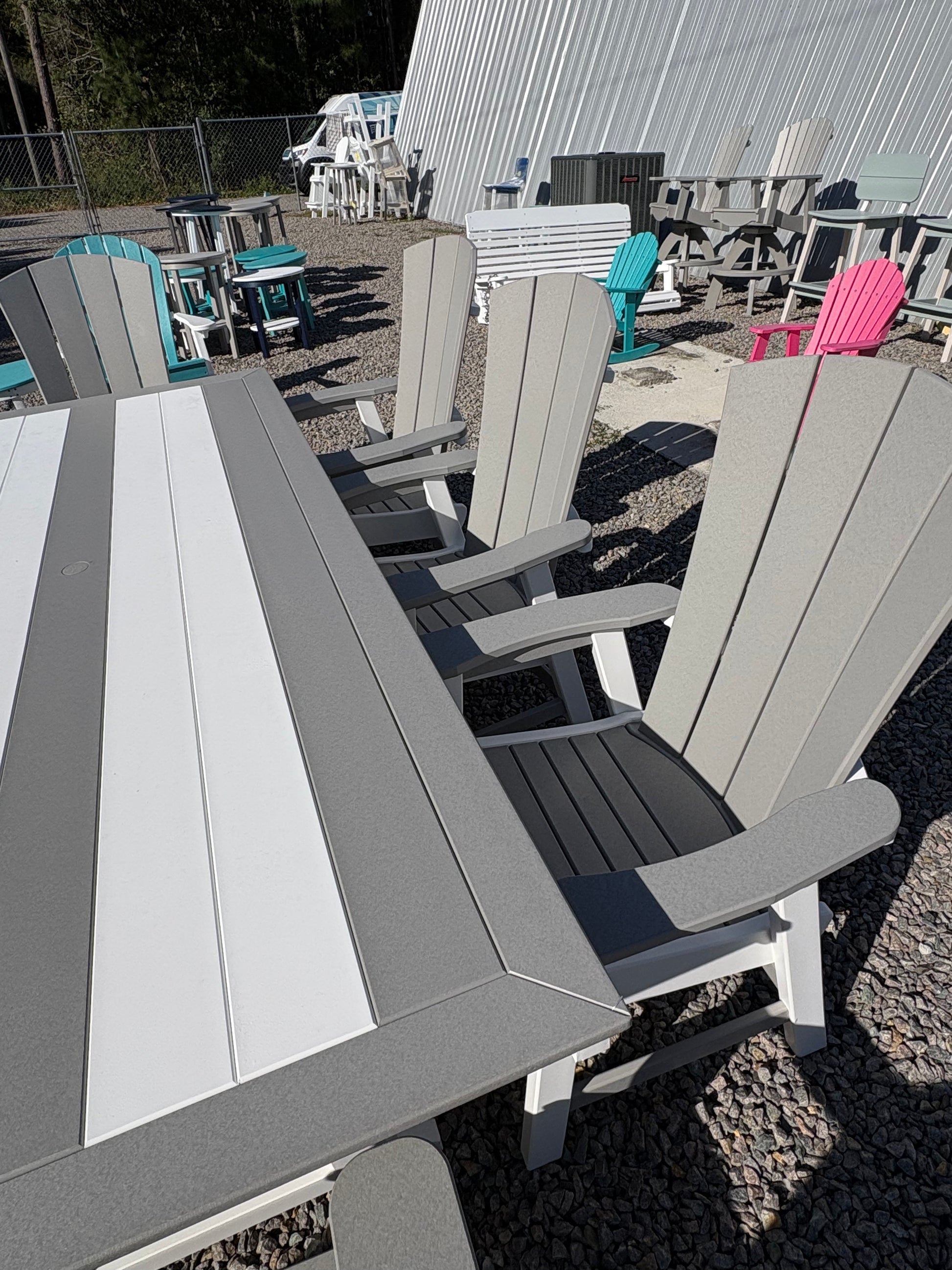 Expertly crafted with high quality HDPE material and marine grade stainless steel hardware, the Beaver Dam 8 Top Dining Set offers a 20 year warranty for a durable and long-lasting outdoor dining experience. Includes 8 stationary chairs. Elevate your backyard gatherings with this luxurious set.