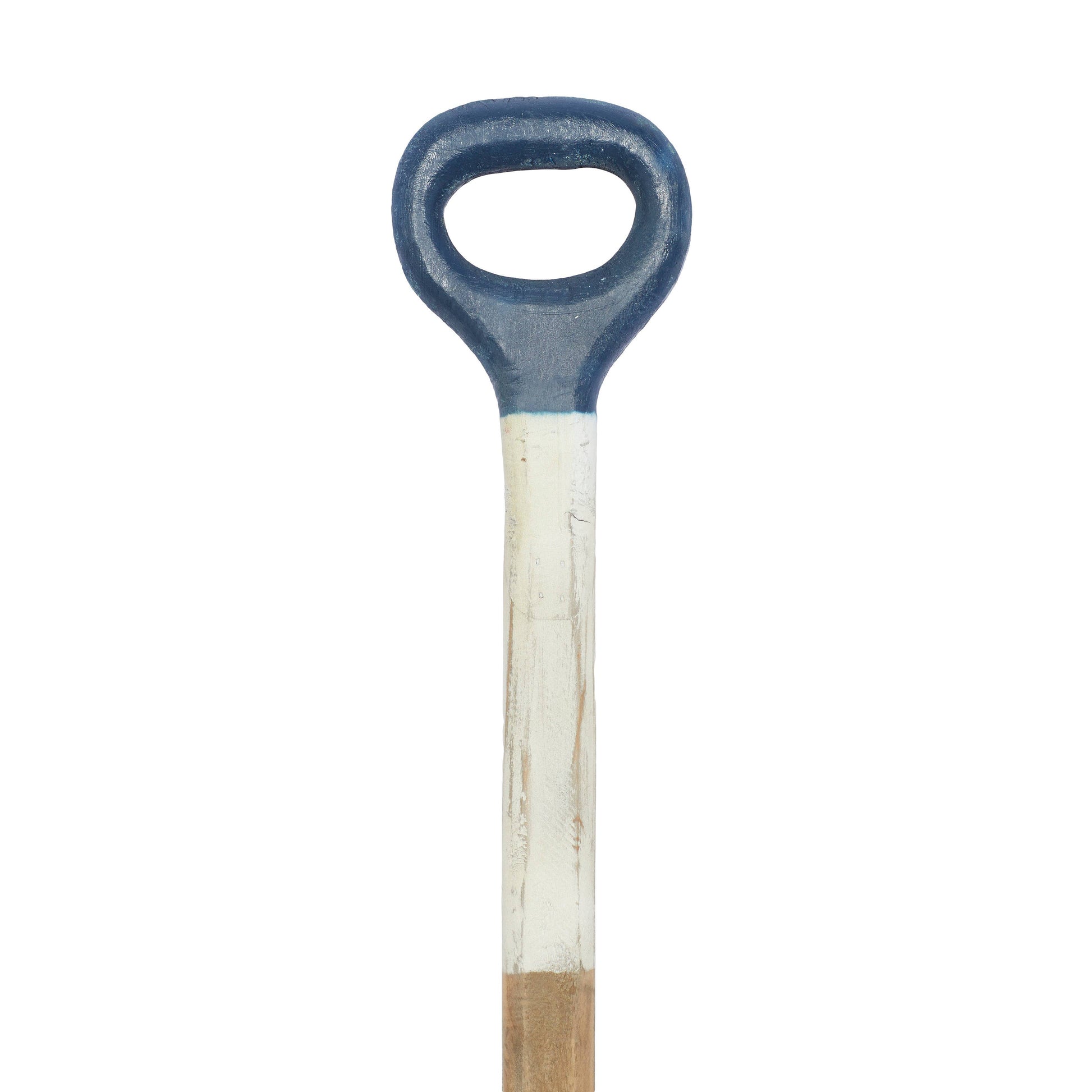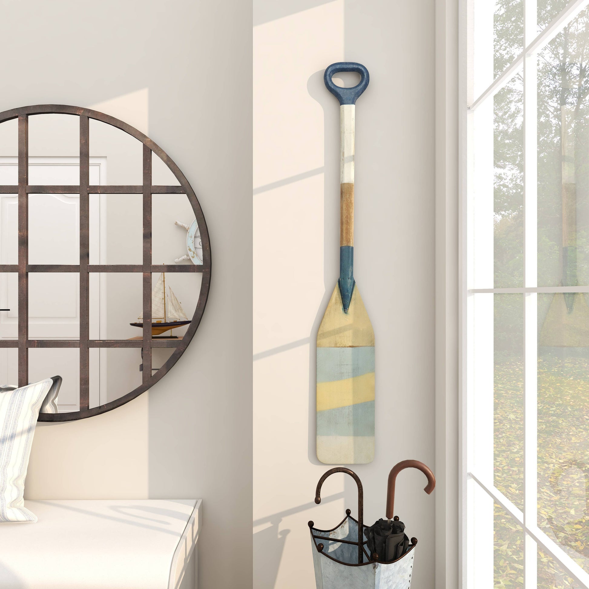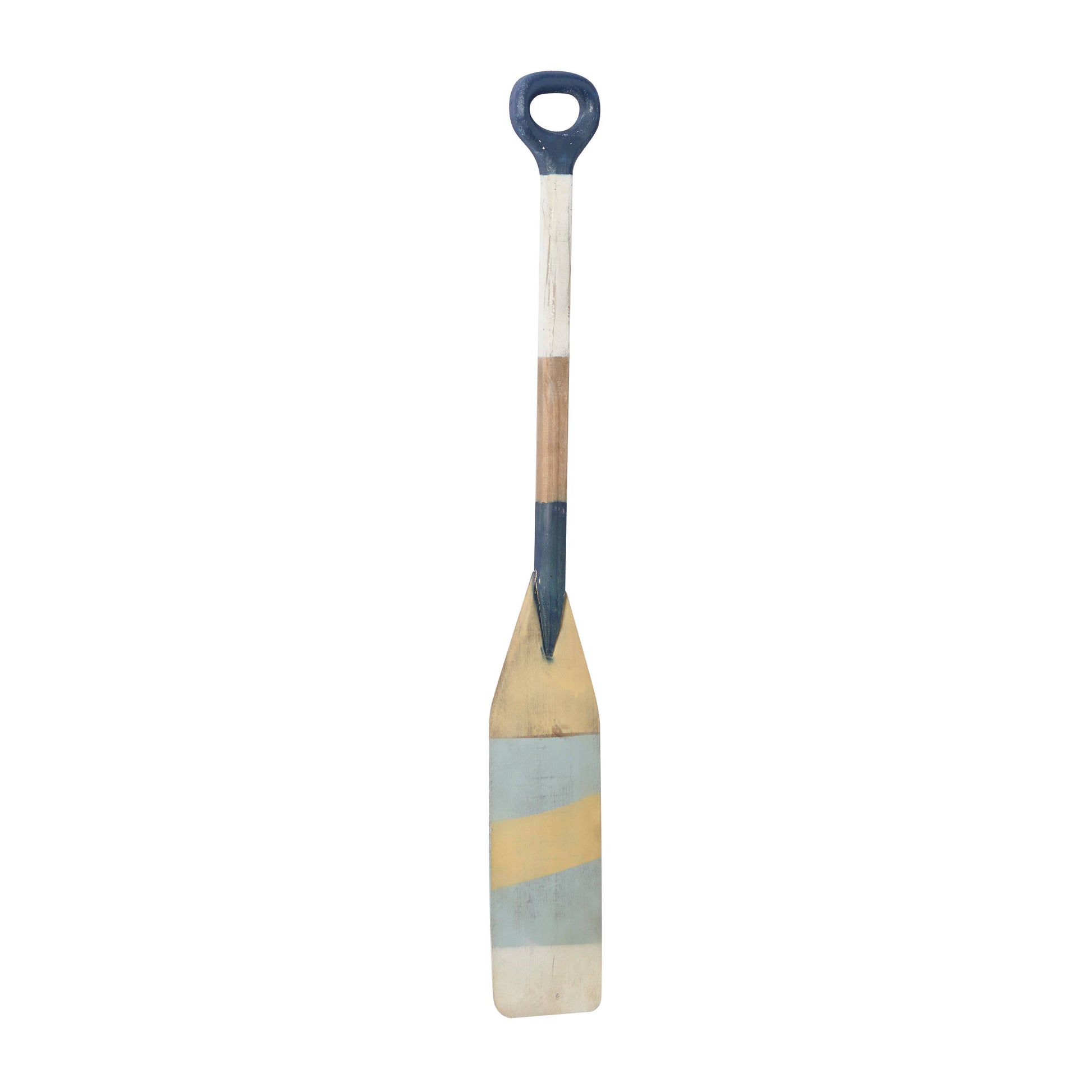 Hang this wooden oar on a wall or let it rest in a corner for a remarkable standing oar display. This is a single multi colored mdf wall sculptures. Coastal style.