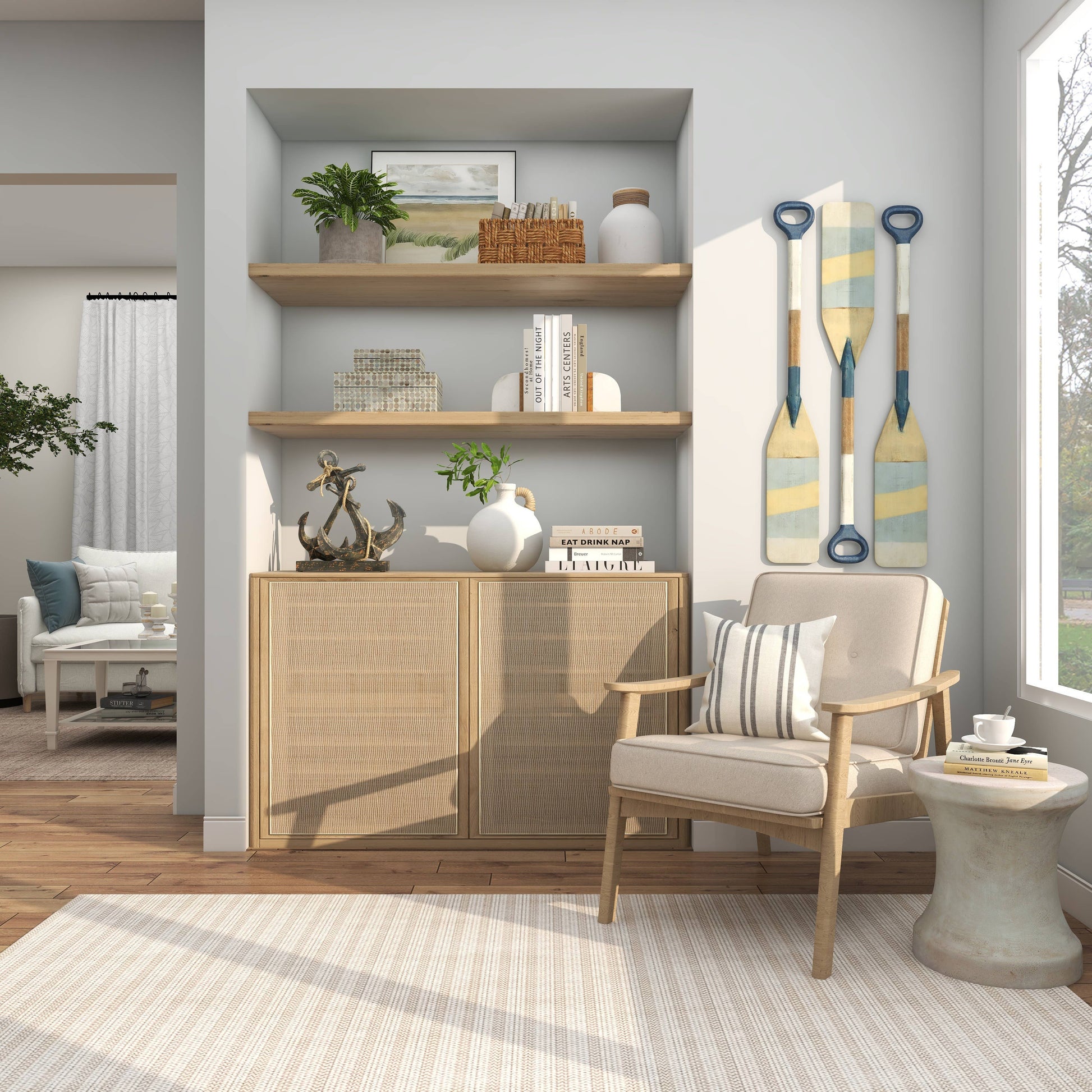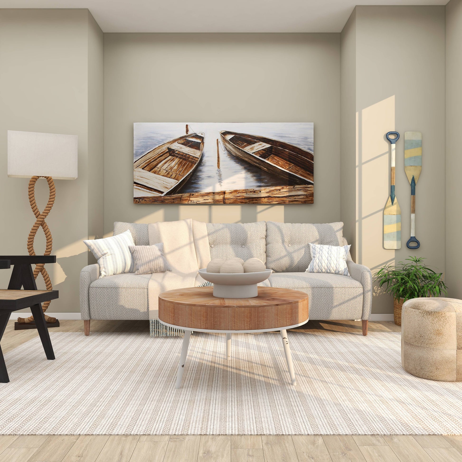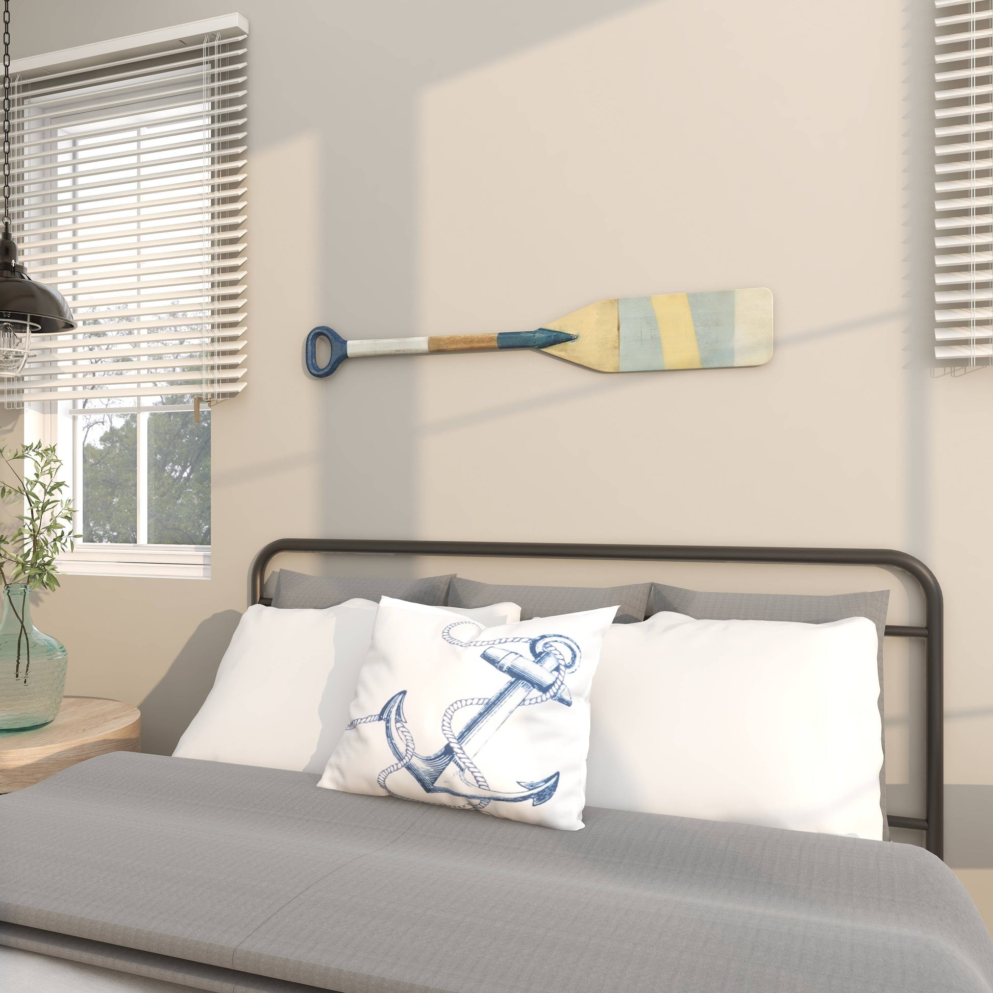 Hang this wooden oar on a wall or let it rest in a corner for a remarkable standing oar display. This is a single multi colored mdf wall sculptures. Coastal style.