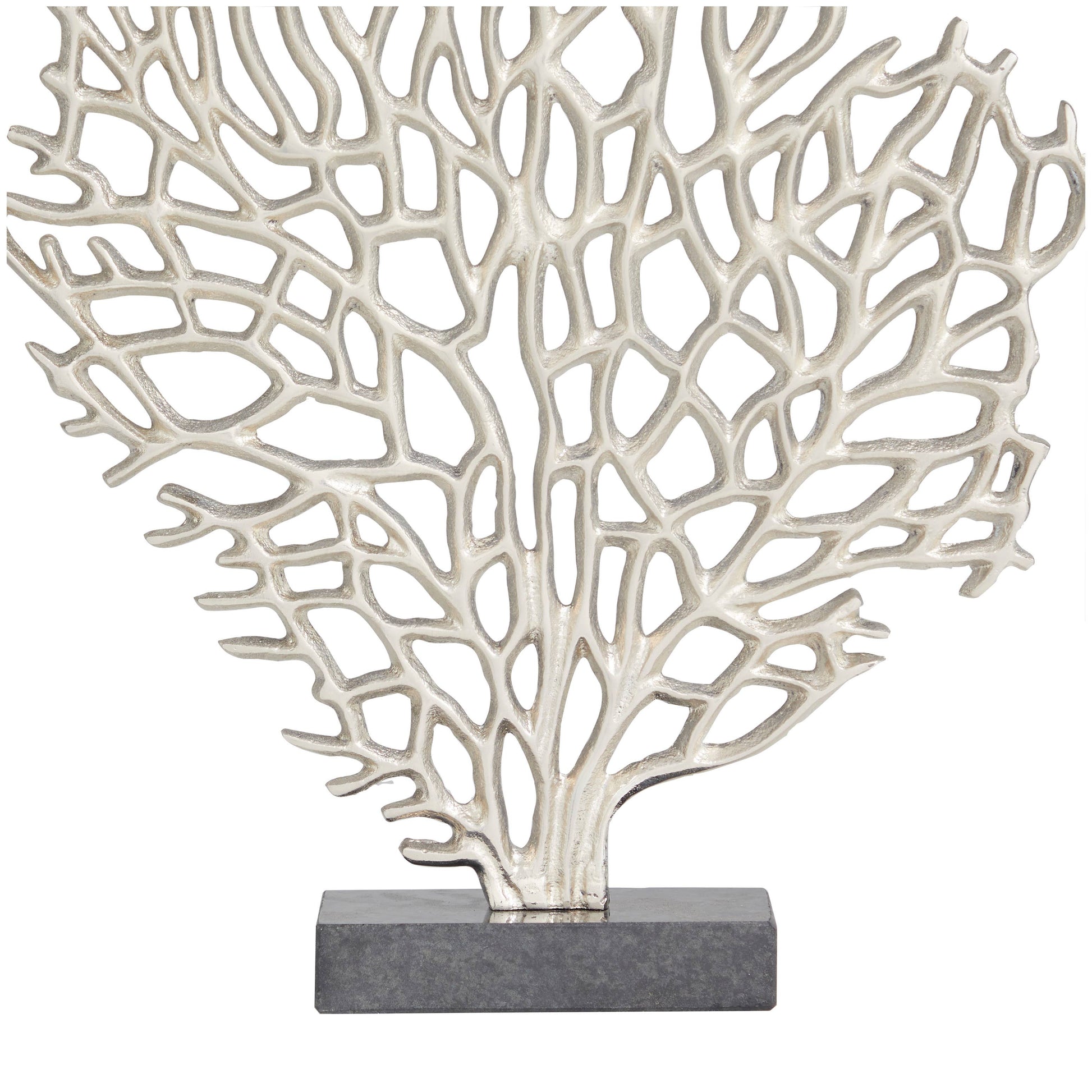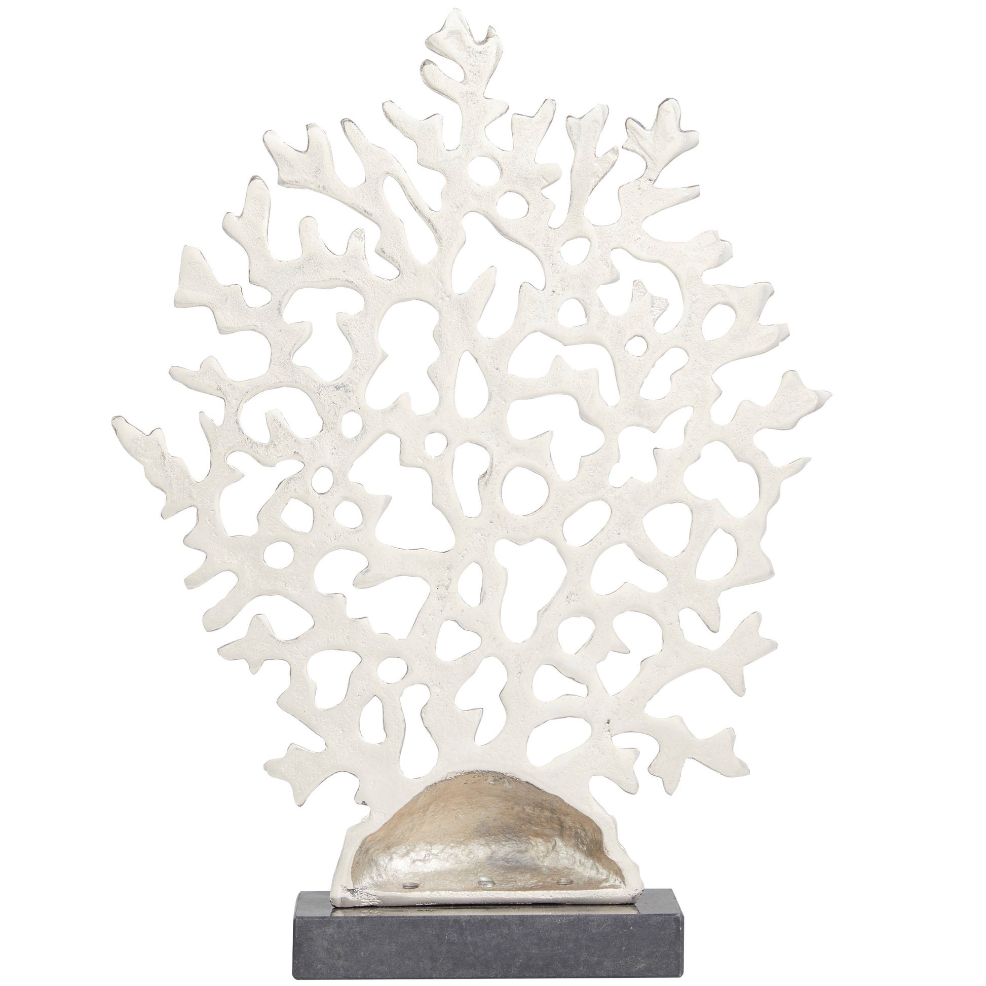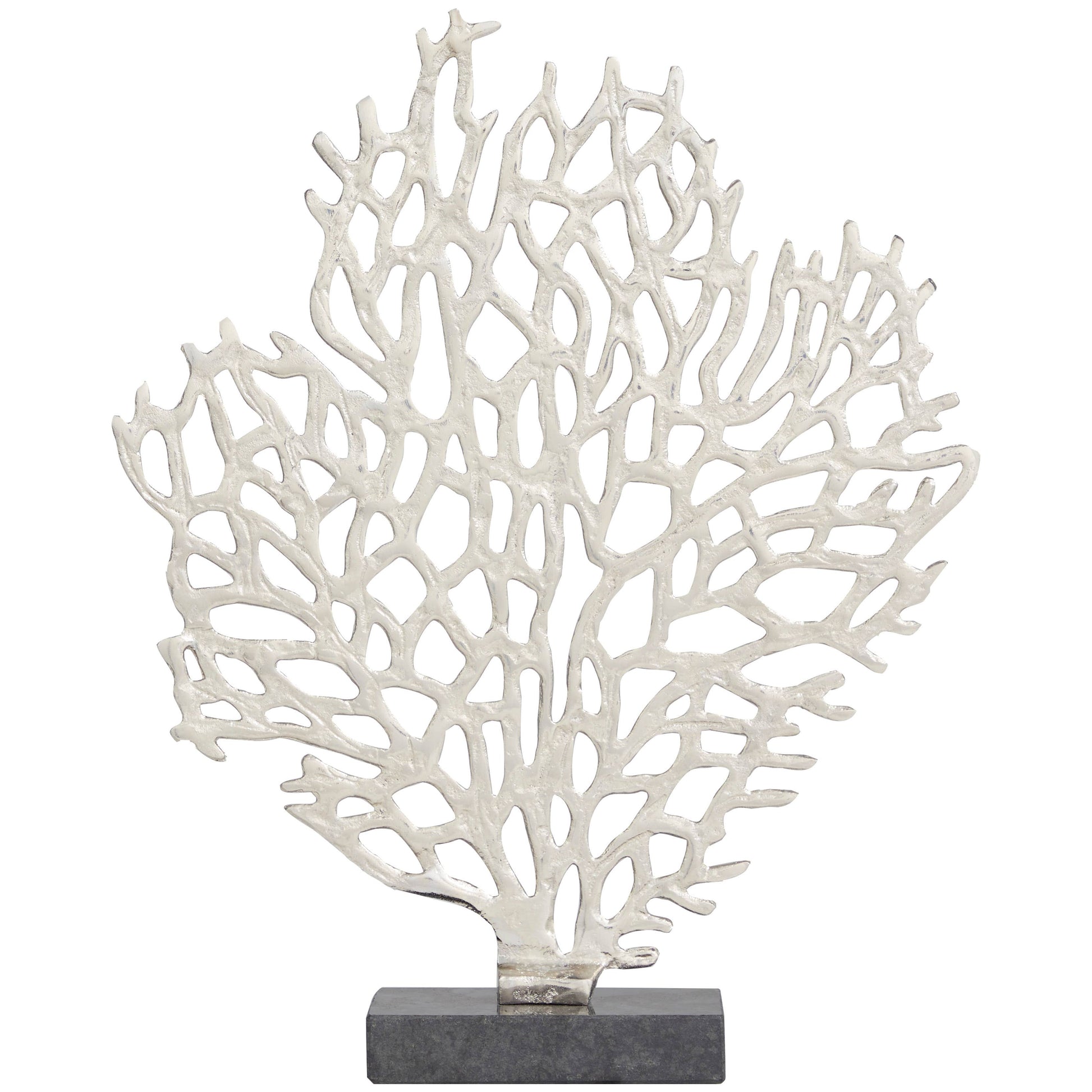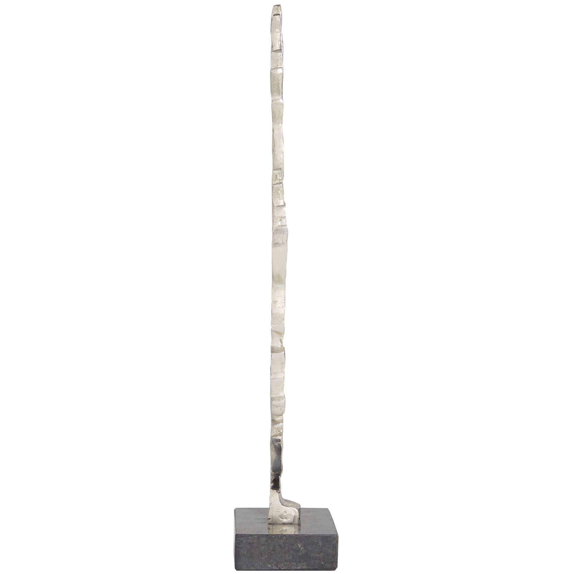 Adorn your surface space by incorporating sculpture into your decor to add depth and texture in your home. An artistic display to showcase your personality and enhance the look of any open table top space. Create a glam inspired atmosphere with this silver sculpture that is best displayed on a console or coffee table, paired with books and a vase with botanical stems. Designed with felt or rubber stoppers at the base that prevent scratching furniture and table tops, as well as sliding around. This item ships in 1 carton. Please note that this item is for decorative use only. Suitable for indoor use only. This item ships fully assembled in one piece. Marble is a product of nature and no two pieces are exactly alike. It is prone to variations in color and/or patterns in the material that add to the beauty and charm of the piece.. Made in India. This is a single silver colored statue. Coastal style.