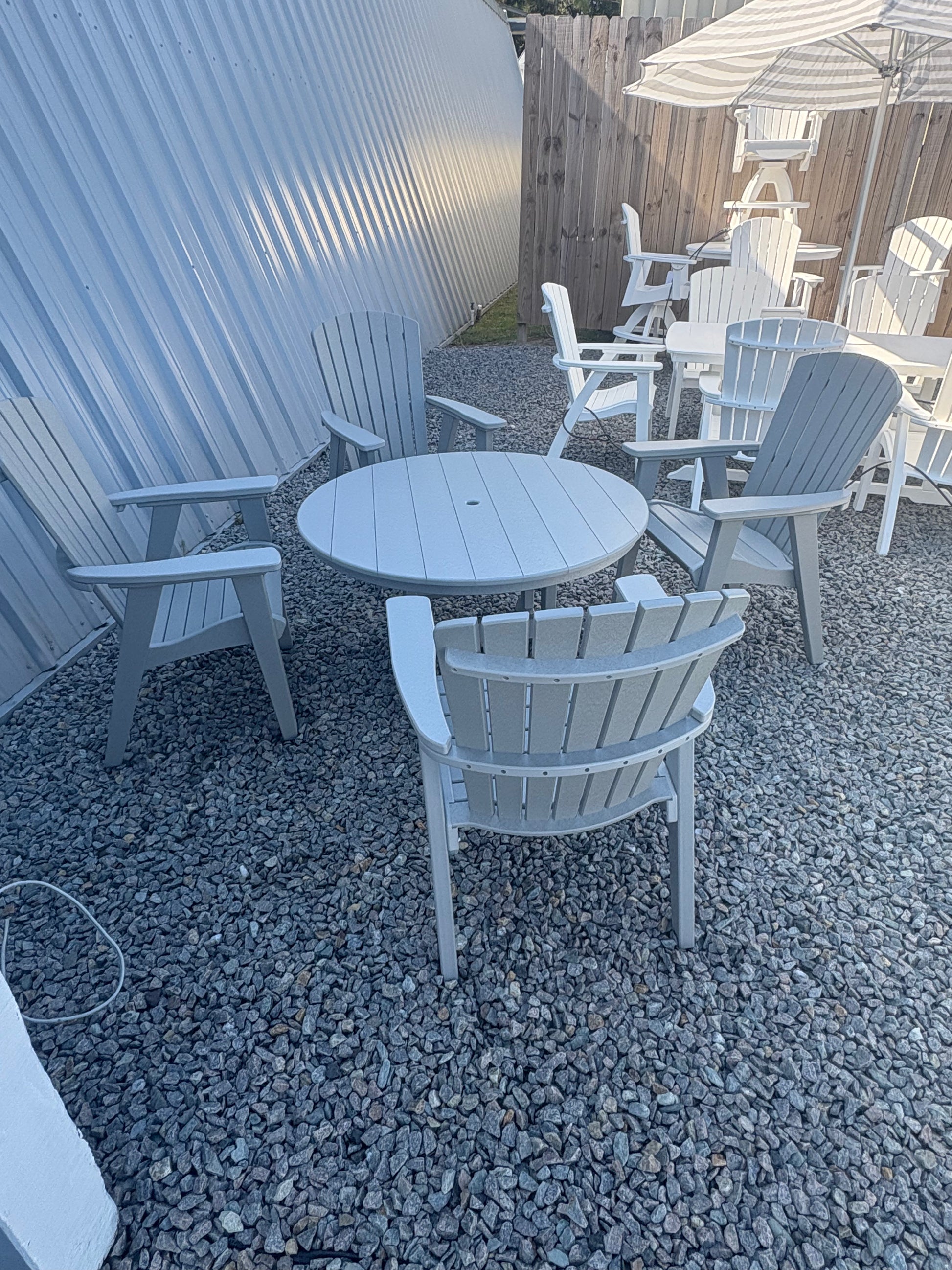 This beautiful Kings Casual table and chair set is perfect for your outdoor dining space. Made with high quality HDPE, it is built to withstand all kinds of outdoor weather.