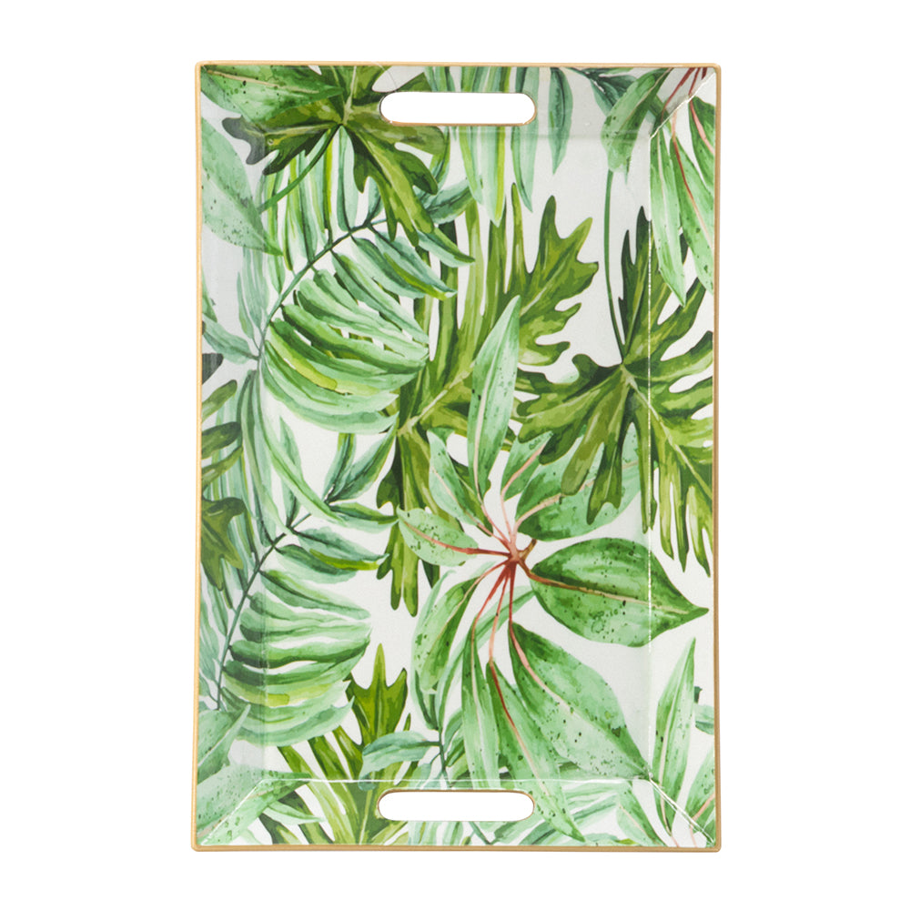 The rectangular palm classic charger plate has a cool palm leaf design that lends a colorful touch to any tabletop. With its long profile and simple design, it’s a lovely touch for tabletops throughout the home. Add it to side tables, kitchen countertops, and more for a stylish modern touch.