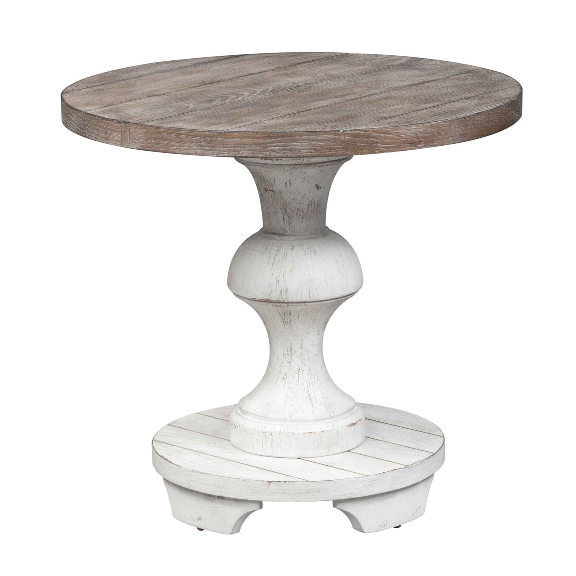 Accent your space with the Spanish style Sedona end table. Crafted of rubberwood solids and oak veneers, this piece features a Kona finish, appealing planked top, anchored by a Spanish style round turned pedestal base. This gorgeous end table will be a great addition to any traditional style space.