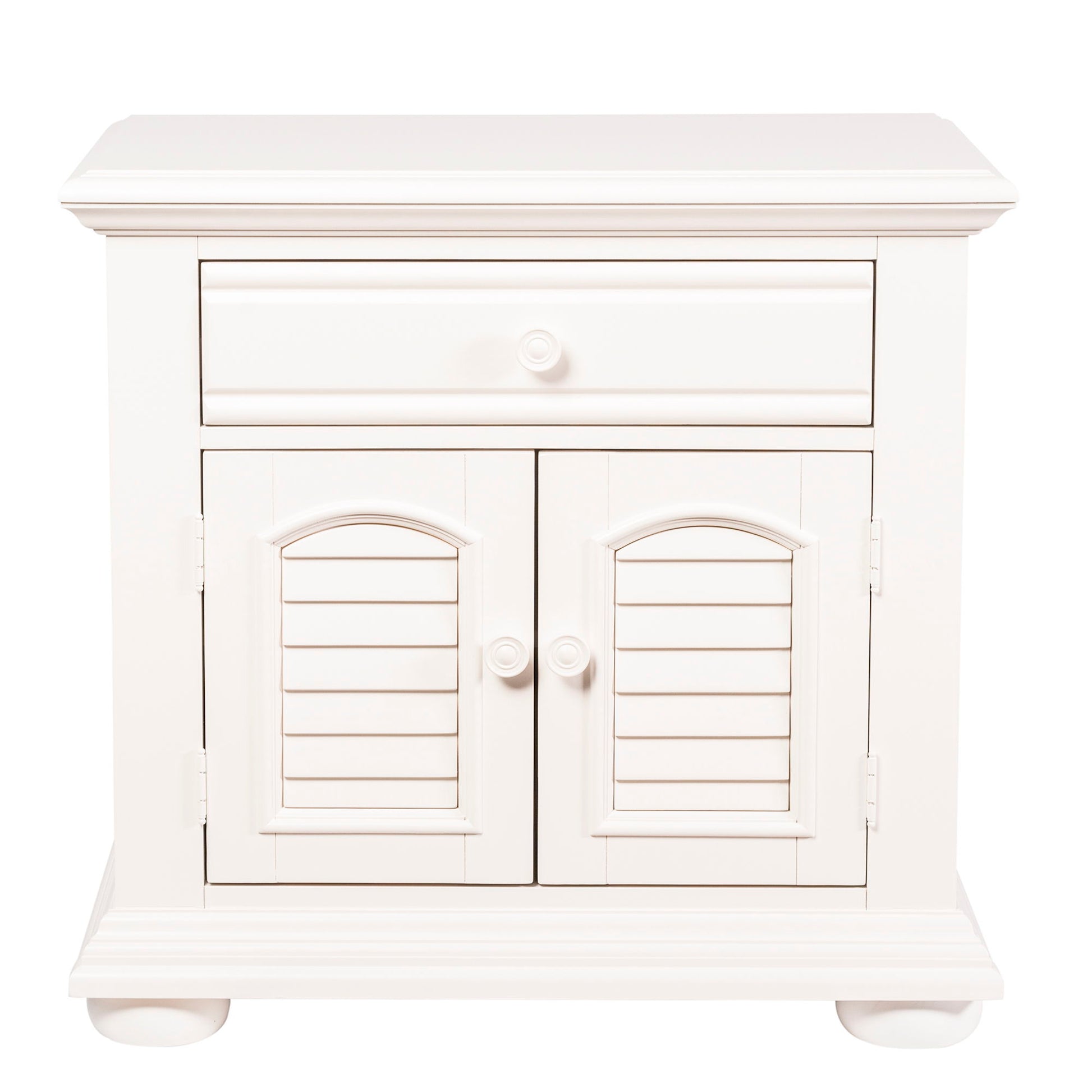 Cottage design is always in fashion. Summer house features the best of cottage with louvered panel accents in an Oyster White finish.