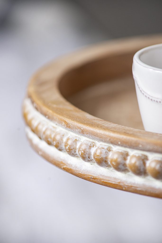 Three Tiered Wooden Display Tray with Beaded Trim, Brown
